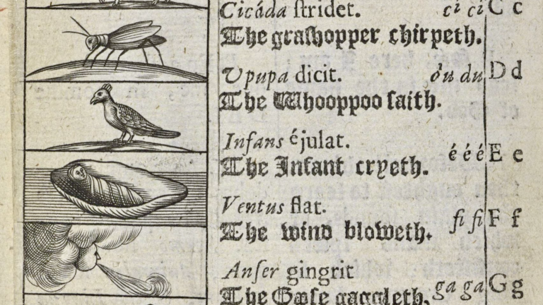 Meanings and grammatical rules emerge intuitively through context, visual cues, and explanations in Latin.