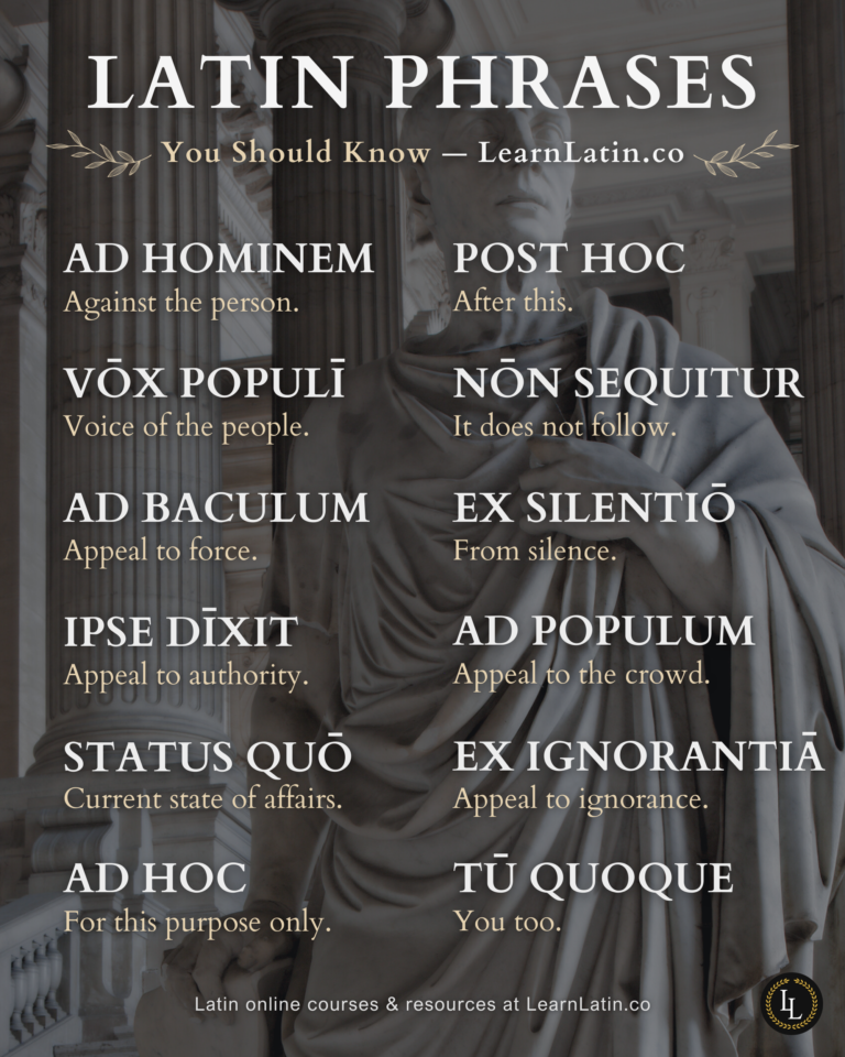 When we talk about bad arguments, manipulation, or faulty reasoning, Latin appears just as often—though usually in a more confrontational way. Terms like ad hominem,